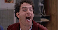 If Northrop Frye was on to anything with this general sketch of the comic archetype, it seems to me that Tom Hanks’ filmography follows something like a comic trajectory. It begins with the easy hedonism of the 80s—the “old order,” in which men and women had quite distinctly defined roles, so clearly defined that no one would hesitate to laugh at a joke about a man sexually mistreating a woman. In this “old order,” too, ethnic groups were easily slotted and categorized according to any number of unquestioned racial stereotypes and prejudices—so “easily,” in fact, that a film like Volunteers or The Bonfire of the Vanities could be made without anyone batting an eye.